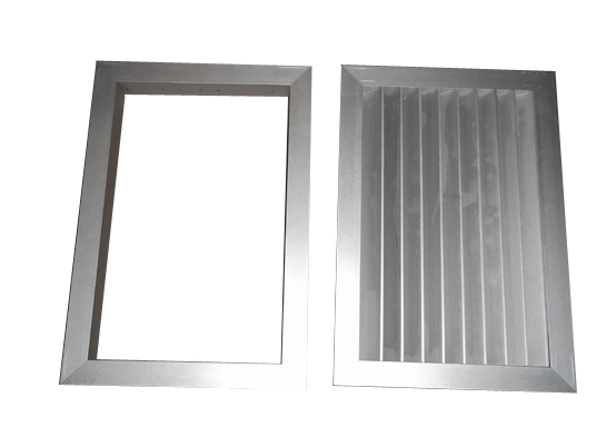 A Taboão Calhas produz várias modalidades de grelhas para atender as mais variadas aplicações: Grelha de porta em alumínio natural Grelha de porta em aluminio natural Grelha invertida branco Grelha invertida com colarinho Grelha invertida com colarinho Grelha invertida